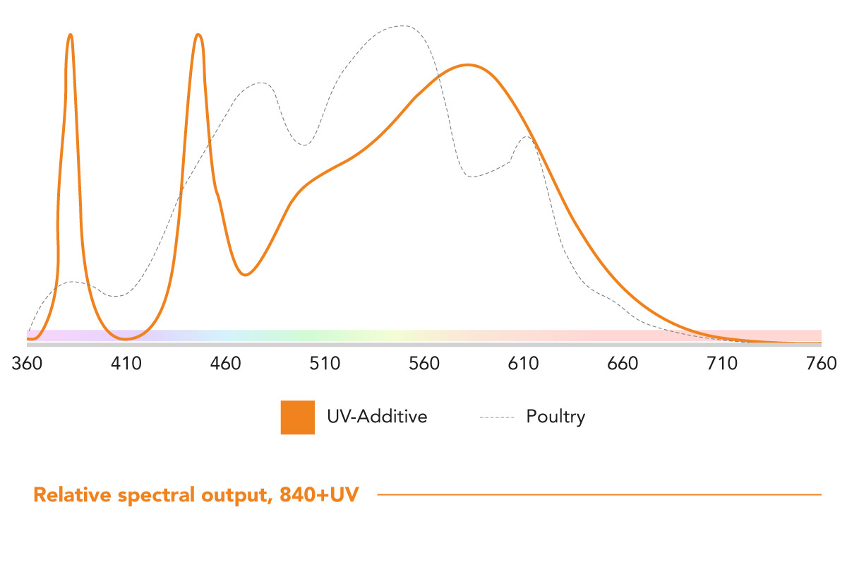 L'œil sensible des volailles peut percevoir une lumière qui n'est pas perceptible par l'œil humain. Les solutions d'éclairage de pacelum offrent des spectres lumineux parfaitement adaptés à la volaille. Cela profite non seulement aux animaux, mais aussi à vous.